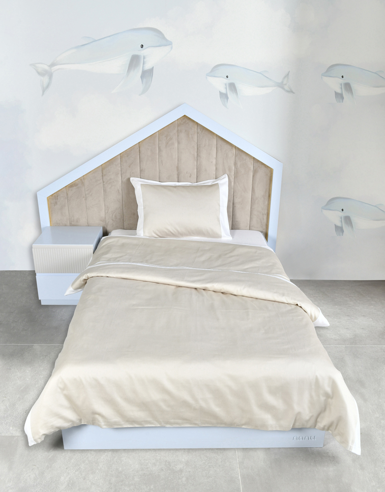 Nanu'nun özel tasarımı olan bu tek kişilik nevresim takımı, pastel açık kahverengi tonlarıyla odanıza zarif bir dokunuş katacak. Hem şık hem de kullanımı keyifli olan bu nevresim takımı, çocuklarınızın uyku kalitesini artırmak için ideal bir seçimdir. Nanu'nun özel tasarımı olan bu %100 koton nevresim takımı çocuklarınızın favorisi olacak.
