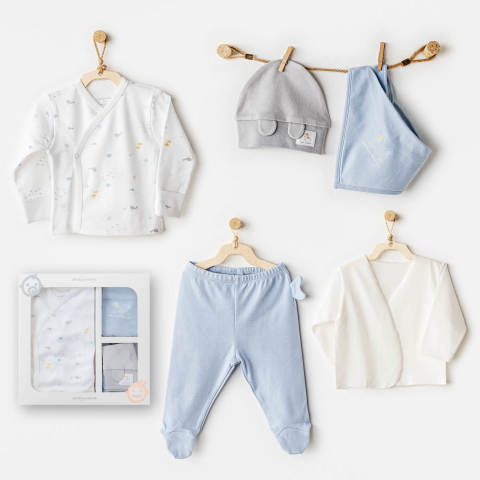 Bebeğinizin dünyaya merhaba dediği o en özel an için tasarlanan Balık Desenli Hastane Çıkış Seti, sevimli desenleri ve yumuşacık dokusuyla hem konforlu hem de şık bir başlangıç sunar. Tatlı balık figürleriyle süslenen tasarımı, ilk fotoğraflara enerjik ve neşeli bir hava katar.