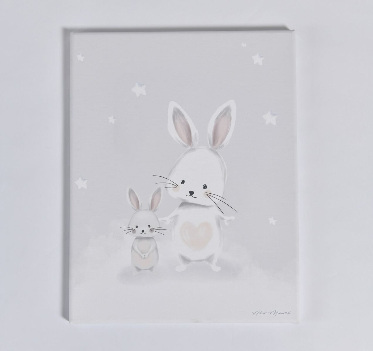 Çocuk odaları için sıcak ve sevgi dolu bir atmosfer yaratmak isteyenler için özel olarak tasarlanmış çocuk odası tablo modellerimiz arasında yer alan anne ve bebek tavşan temalı tasarım, yüksek kaliteli pamuk içerikli canvas tablo üzerine özenle basılmaktadır.