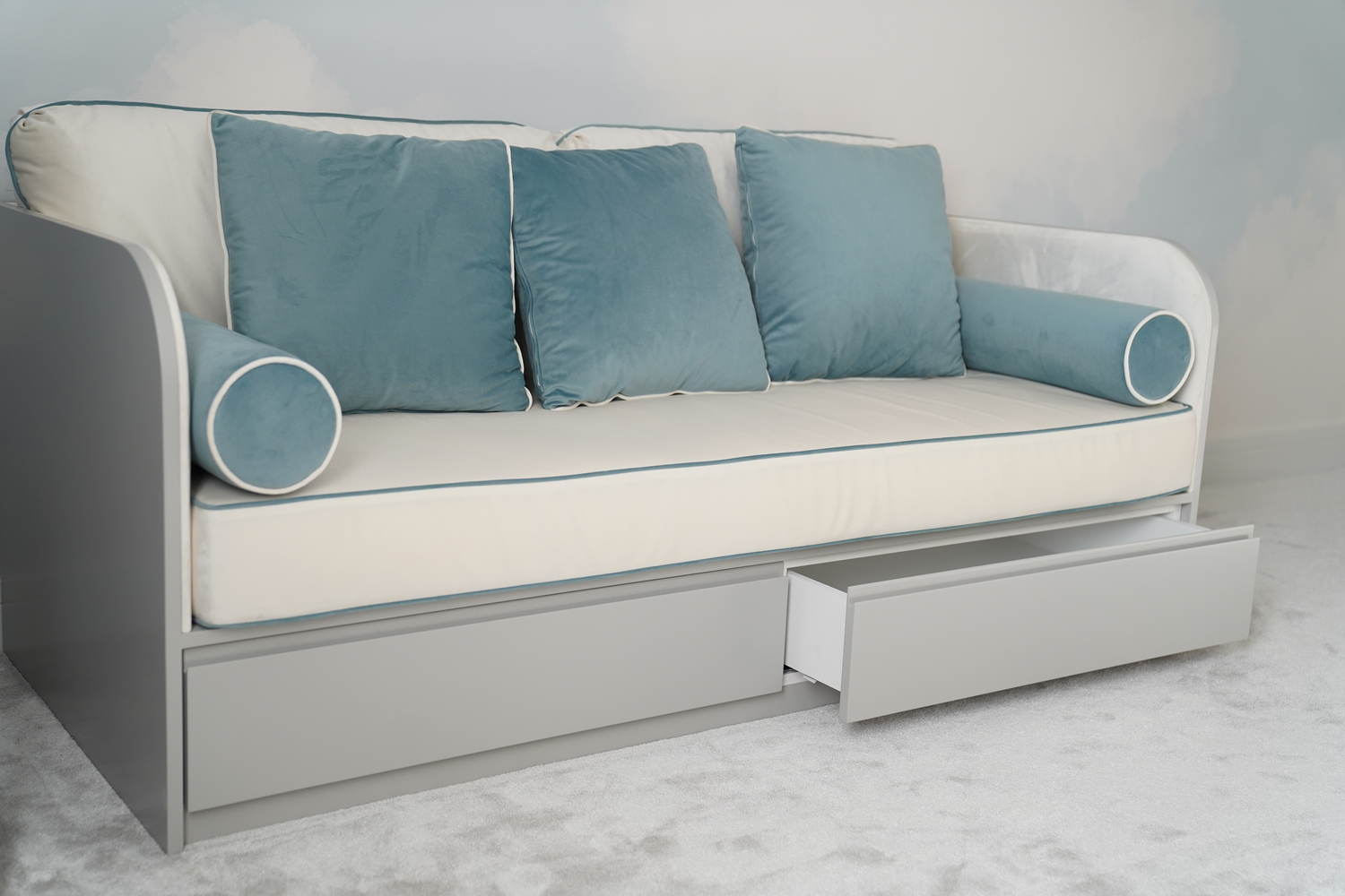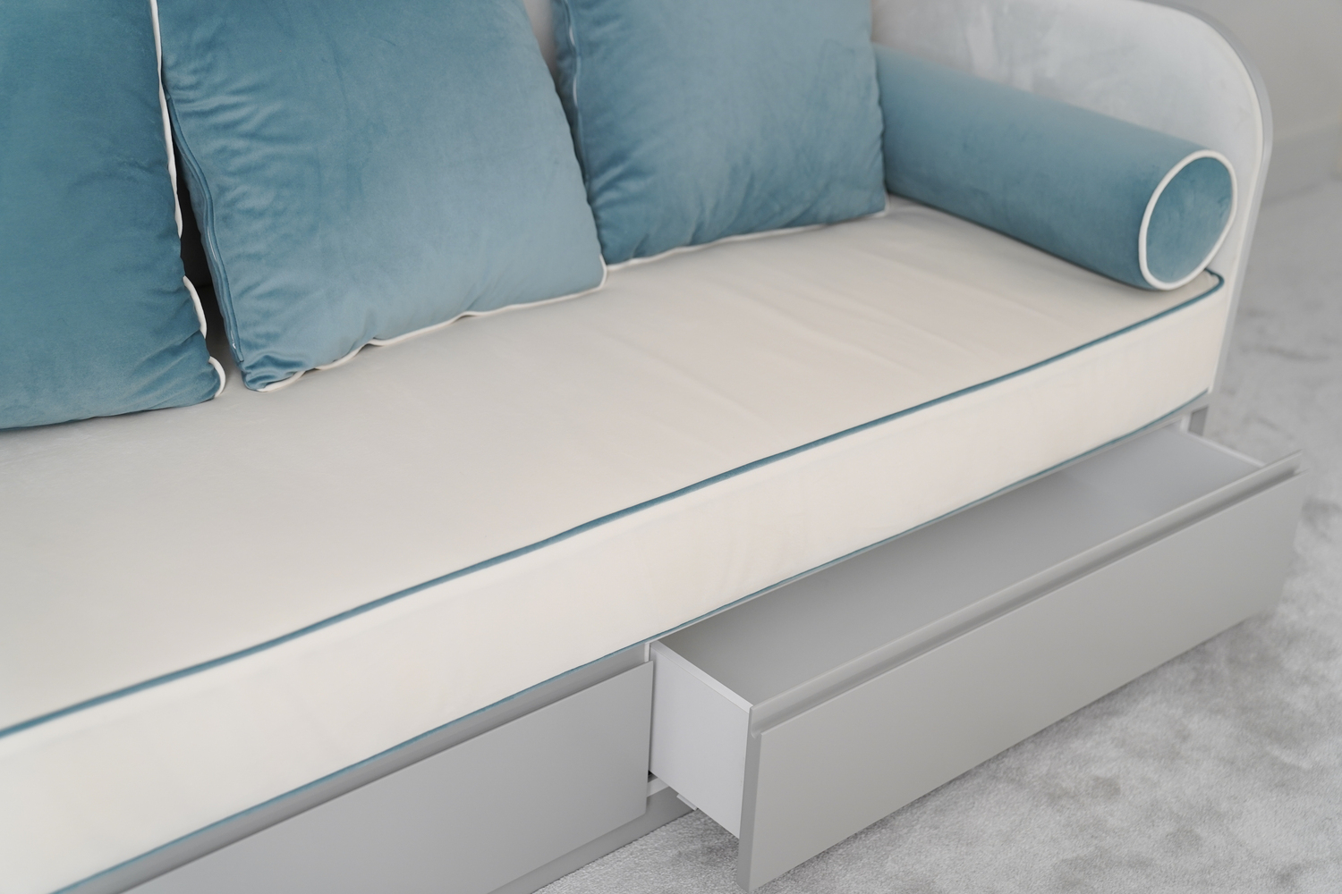 Bebek ve çocuk odaları için özel olarak tasarlanan Diva bebek odası sedir , fonksiyonel yapısı ve estetik görünümüyle dikkat çeker. Diva sedir, hem oturma alanı hem de gerektiğinde uzanarak dinlenme alanı olarak kullanılabilir. Tasarımı sayesinde odanıza şıklık katarken, alt kademesine eklenebilen 2 çekmece seçeneği ile bebeğinizin eşyalarını düzenlemenize yardımcı olur. Çekmeceler sayesinde odada ekstra depolama alanı elde edebilir, oyuncak, kıyafet ve diğer ihtiyaçları organize edebilirsiniz.