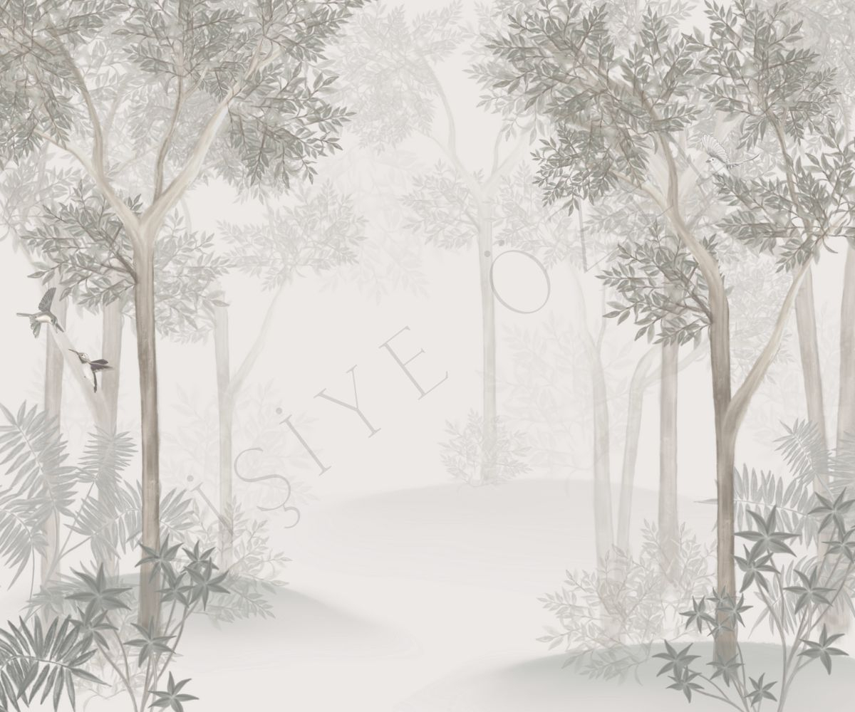 Orman havasını bebeğinizin odasına taşımak için duvar kağıdı.