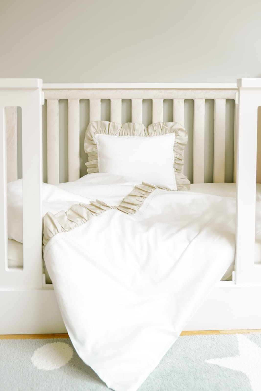 Nanu'nun özel tasarımı olan %100 koton bebek nevresim takımı, 0-4 yaş arası bebek karyolalarına (70x140, 70x150, 60x140, 60x130, 80x140, 90x150 gibi ölçülere uygundur) mükemmel uyum sağlar. Yumuşacık pamuk satenden üretilmiş Nanu bebek nevresim takımı, sevimli ve şık pastel tonlarıyla odanıza dingin bir ruh katarken, bebeğinizin uyku kalitesini artırır. Pastel bej-beyaz renk tonları ile üretilen bu %100 pamuk nevresim takımı, bebeğinizin hassas cildine dosttur ve uzun ömürlü kullanımı ile dikkat çeker. Kullanımı oldukça keyifli olan bu çocuk nevresim takımı, hem sizin hem de bebeğinizin rahatını düşünerek tasarlanmıştır. Bu yumuşacık çocuk nevresim takımı, bebeklerinizin rahat ve huzurlu bir uyku deneyimi yaşaması için en uygun malzemeler ile tasarlanmıştır. Nanu'nun %100 pamuk nevresim takımı ile bebeğinizin odasını zarif bir şekilde tamamlayın ve uyku kalitesini artırın.