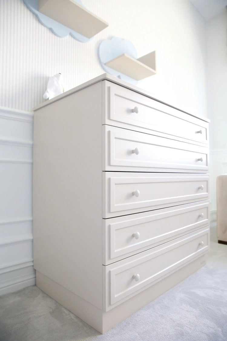 Klasy 5 Çekmeceli Şifonyer, çocuğunuzun odasında hem düzen hem de şıklık yaratmak için tasarlanmıştır. Beş geniş çekmecesi sayesinde giysilerden oyuncaklara, kitaplardan aksesuarlarına kadar her şeyi kolayca organize edebilirsiniz. Dayanıklı malzemeleri ve modern tasarımıyla, hem bebek odası şifonyer hem de çocuk odası şifonyer olarak uzun yıllar boyunca rahatlıkla kullanılabilir.