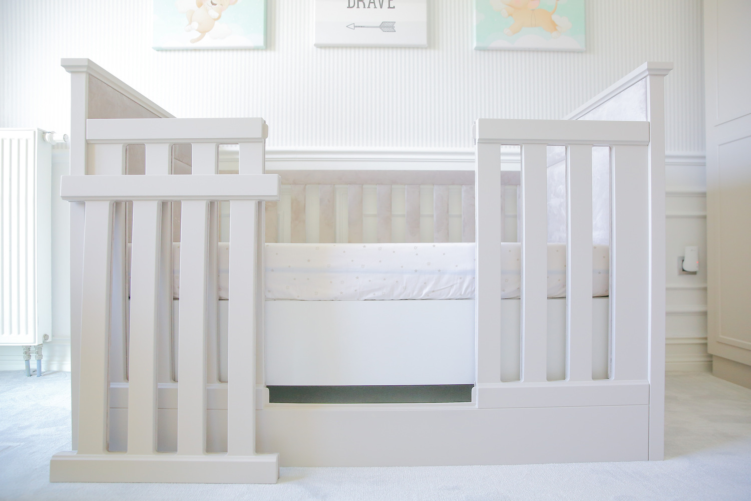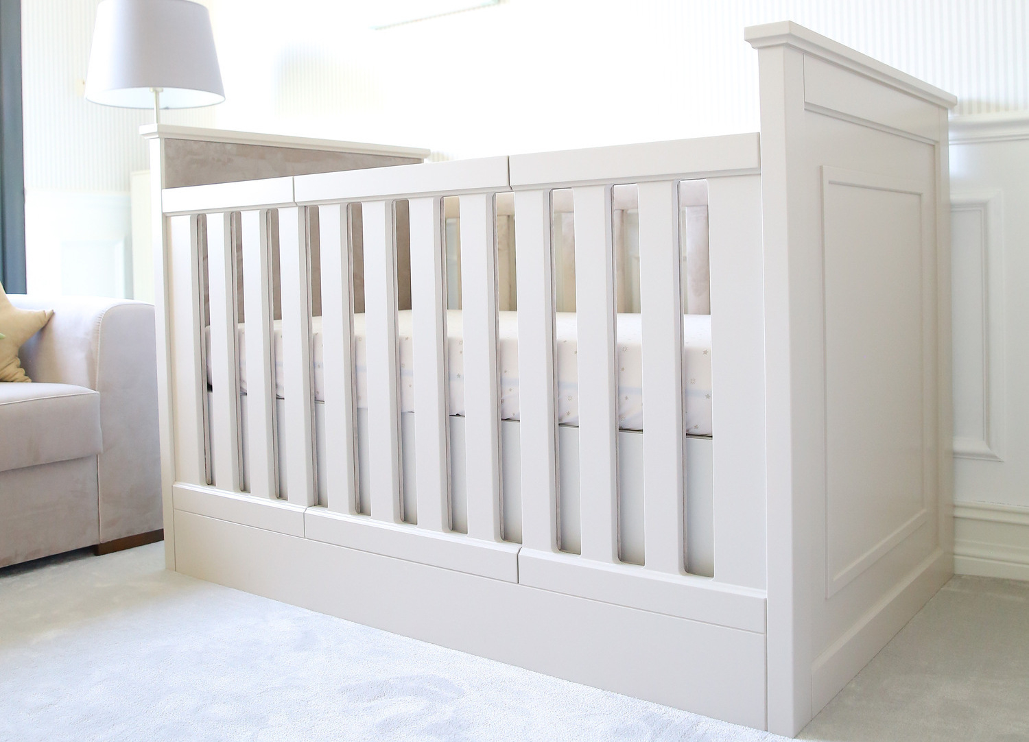 1.Bebek karyolası, bebek beşiği yada 2 yaşından itibaren kullanılan geçiş karyolaları, kendinden korumalı iç kaplaması, yani skin bumper sayesinde çocuğun uyurken yada içerisinde vakit geçirirken sert ahşaba çarpmasını önlüyor.