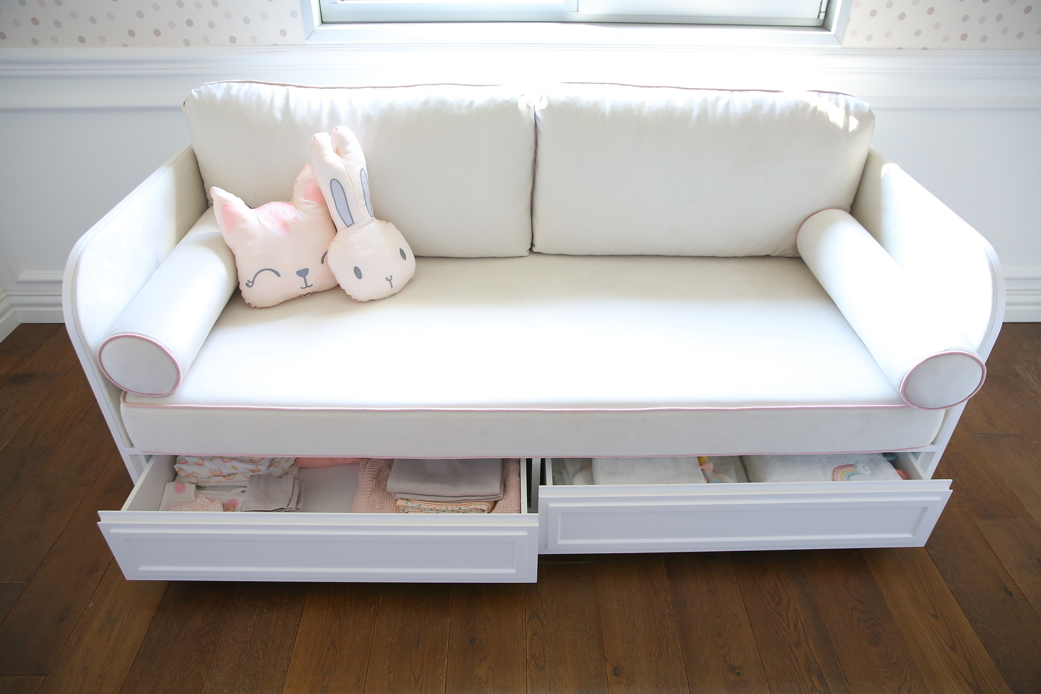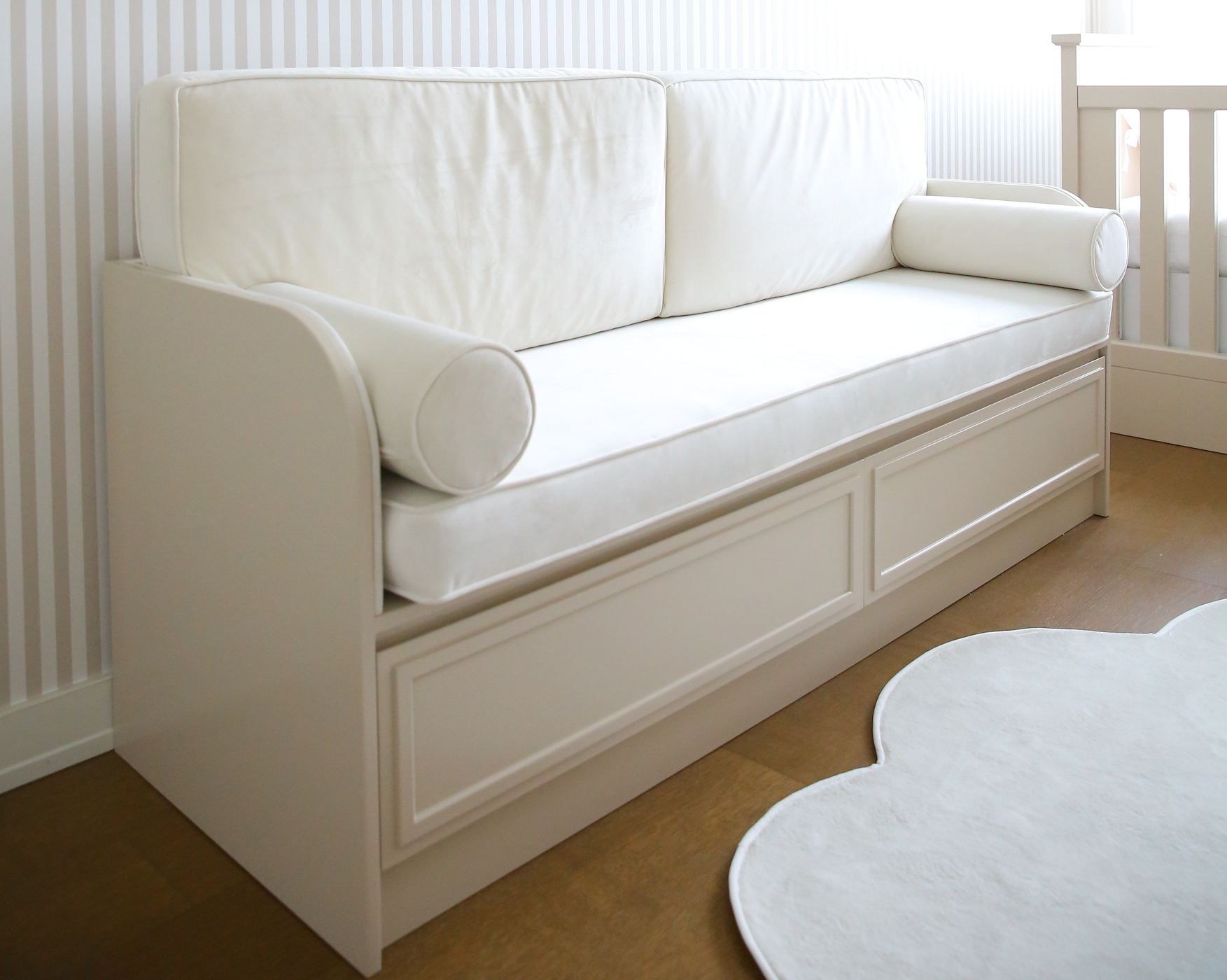 Klasy sedir, bebek ve çocuk odaları için hem konforlu hem de şık bir tasarım sunar. Gündüzleri oturma alanı olarak kullanılabilirken, geceleri uzanıp dinlenebileceğiniz bir yatak alternatifi olarak da düşünülmüştür. Bebek odası sedir modeli, odanıza estetik bir dokunuş katar ve çok amaçlı kullanımıyla ebeveynler için pratik bir çözüm sağlar. Alt kademesine dilerseniz 2 çekmece ekleyerek bebeğinizin eşyalarını düzenleyebilir, odanızda ekstra depolama alanı yaratabilirsiniz.