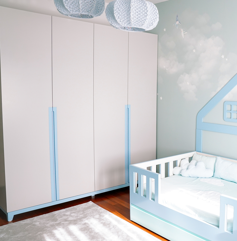 Lamio dört kapılı gardırop, çocuğunuzun odasında düzeni ve estetiği bir araya getiren şık bir mobilya çözümüdür. 200x210x60 cm ölçülerinde olan bu gardırop, ihtiyaca göre özelleştirilebilen 6 farklı renk ve 32 farklı ton seçeneği sunar. Bebek odası gardırop modelleri arasında öne çıkan Lamio, 12 raf ve 5 çekmece ile çocuğunuzun giysilerini, oyuncaklarını ve diğer eşyalarını düzenlemenizi kolaylaştırır.