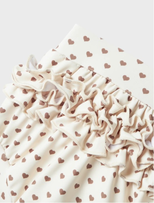Sevimli kalp desenleriyle süslenmiş bu kız çocuk bikini altı, yaz aylarının en tatlı parçası olmaya aday! Yumuşak ve esnek kumaşı sayesinde miniklerin hassas cildine uyum sağlar, rahat kesimiyle hareket özgürlüğünü destekler. Bel kısmındaki geniş lastik konforlu bir kullanım sunarken, arka bölümdeki kat kat fırfır detayı ise tasarıma zarif bir dokunuş katar. Hem deniz hem havuz için uygun olan bu mayo altı, tatil valizlerinin vazgeçilmezlerinden biri olacak. Sevimliliğiyle annelerin kalbini kazanırken, miniklerin enerjisine ayak uydurur!