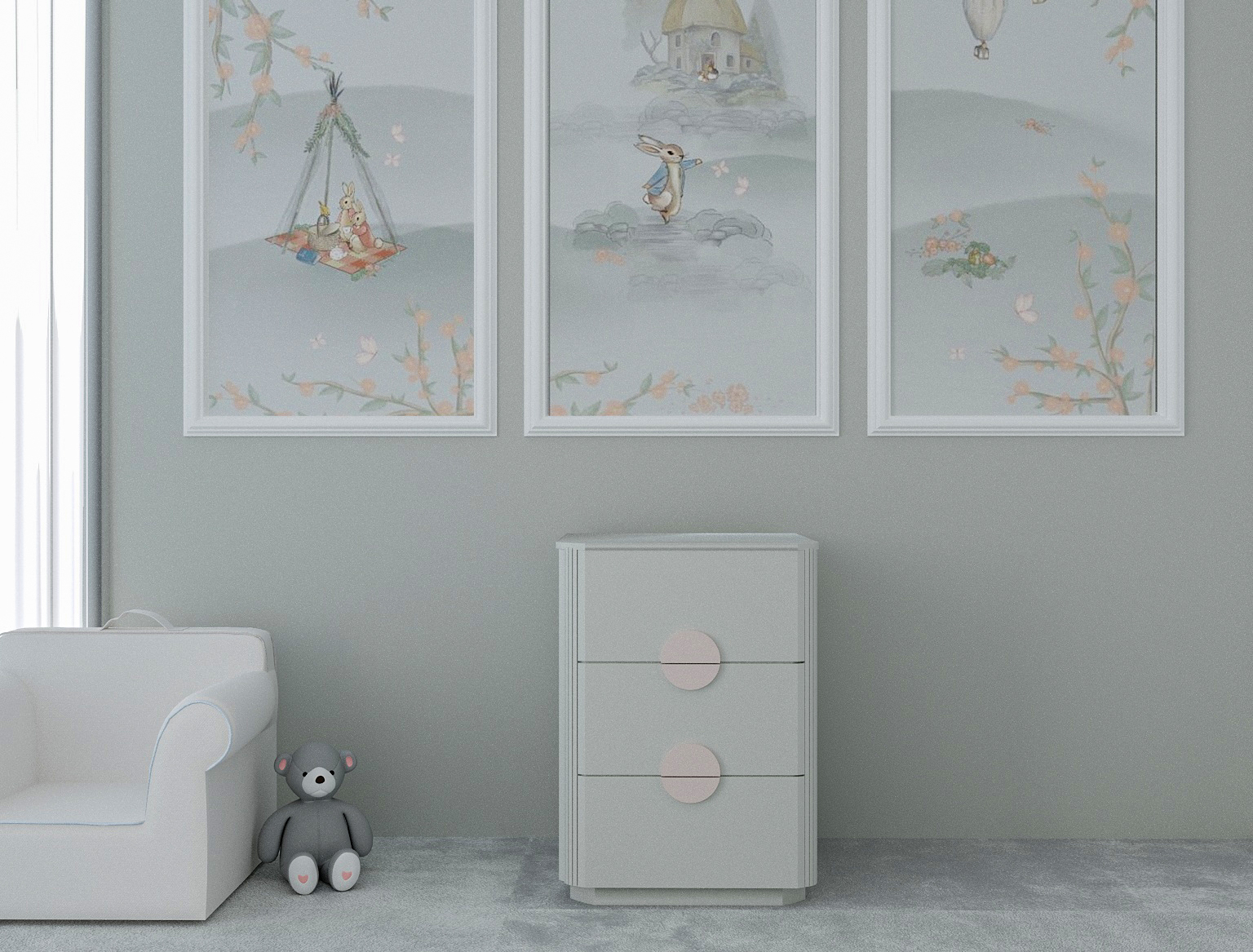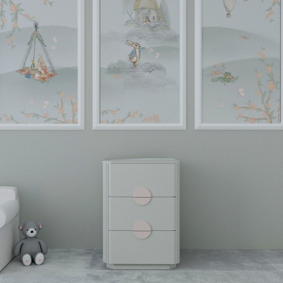 Lilyum çocuk ve bebek odası komodin, üç geniş çekmecesiyle hem fonksiyonel hem de estetik bir mobilya seçeneği sunar. Çocuğunuzun iç çamaşırlarını, çoraplarını ve diğer küçük eşyalarını düzenli bir şekilde saklamanıza yardımcı olur. Lilyum komodin, yuvarlatılmış köşeleri sayesinde hem zarif bir tasarım sunar hem de çocuğunuzu çarpmalara karşı korur.
