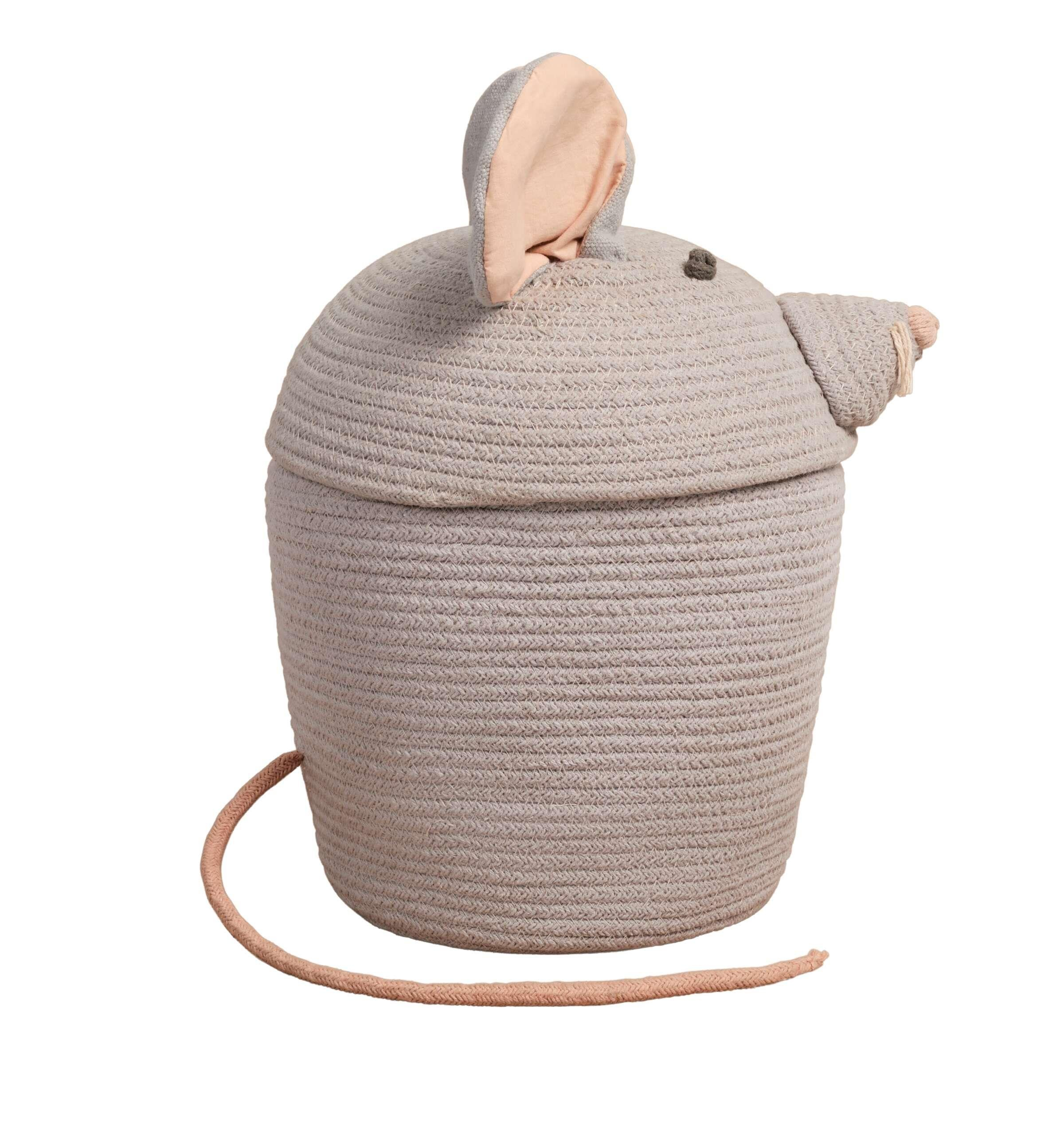 İnci grisi rengindeki pamuk iplikleriyle kaplanmış, geri dönüştürülmüş malzemeden elde edilmiştir. El işçiliğiyle üretilenLorena CanalsRenata Rat sepeti; elyaflardan yapılmış örgülü kordon kullanılmıştır.İnci Grisi renginde hafif huni biçimli alt kısmı ve işlemeli sivri burnuyla, gri kanvas kulakları ve pembe uzun kuyruğu vardır.