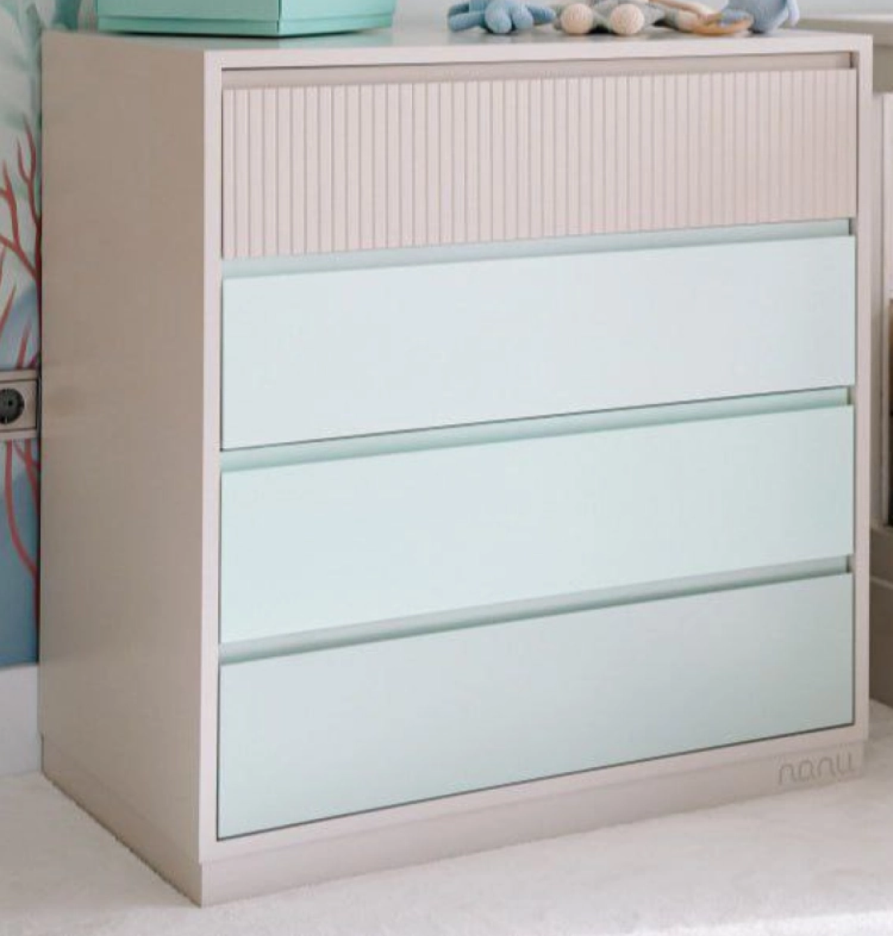 Luna 4 Çekmeceli Şifonyer, çocuğunuzun odasında hem düzen hem de zarafet sağlamak için mükemmel bir seçenektir. Dört geniş çekmecesi ile giysilerden aksesuarlara kadar pek çok eşyayı düzenli bir şekilde saklama imkanı sunar. Modern ve estetik tasarımı sayesinde hem bebek odası şifonyer hem de çocuk odası şifonyer olarak kullanılabilir.