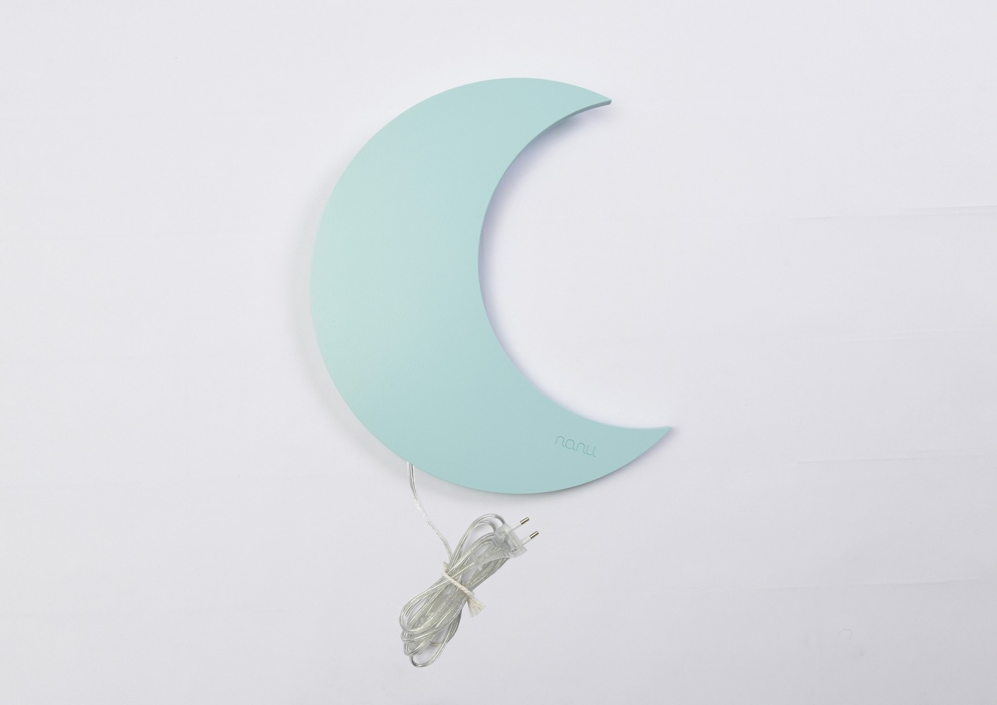 Çocuğunuzun odası için özel olarak tasarlanmış ay şekilli aplik, hem fonksiyonel hem de estetik bir çözüm sunar. Su bazlı boya ve su bazlı cila ile üretilen Nanu çocuk odası aydınlatma ürünleri, sağlığa zarar vermeyen malzemeler kullanılarak özenle tasarlanmıştır. Nanu aplikler korunaklı özel karton kutuları içinde asma aparatı ve kablolu olarak teslim edilir. Talebe göre elektrikçiye kabloyu iptal ettirerek uzaktan kumanda ekletebilir yada çocuğunuzun odasındaki açma kapama düğmesine bağlatabilirsiniz.