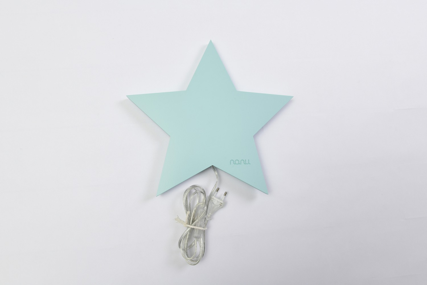 Çocuğunuzun odası için özel olarak tasarlanmış yıldız şekilli aplik, hem fonksiyonel hem de estetik bir çözüm sunar. Su bazlı boya ve su bazlı cila ile üretilen Nanu çocuk odası aydınlatma ürünleri, sağlığa zarar vermeyen malzemeler kullanılarak özenle tasarlanmıştır. Nanu aplikler korunaklı özel karton kutuları içinde asma aparatı ve kablolu olarak teslim edilir. Talebe göre elektrikçiye kabloyu iptal ettirerek uzaktan kumanda ekletebilir yada çocuğunuzun odasındaki açma kapama düğmesine bağlatabilirsiniz.
