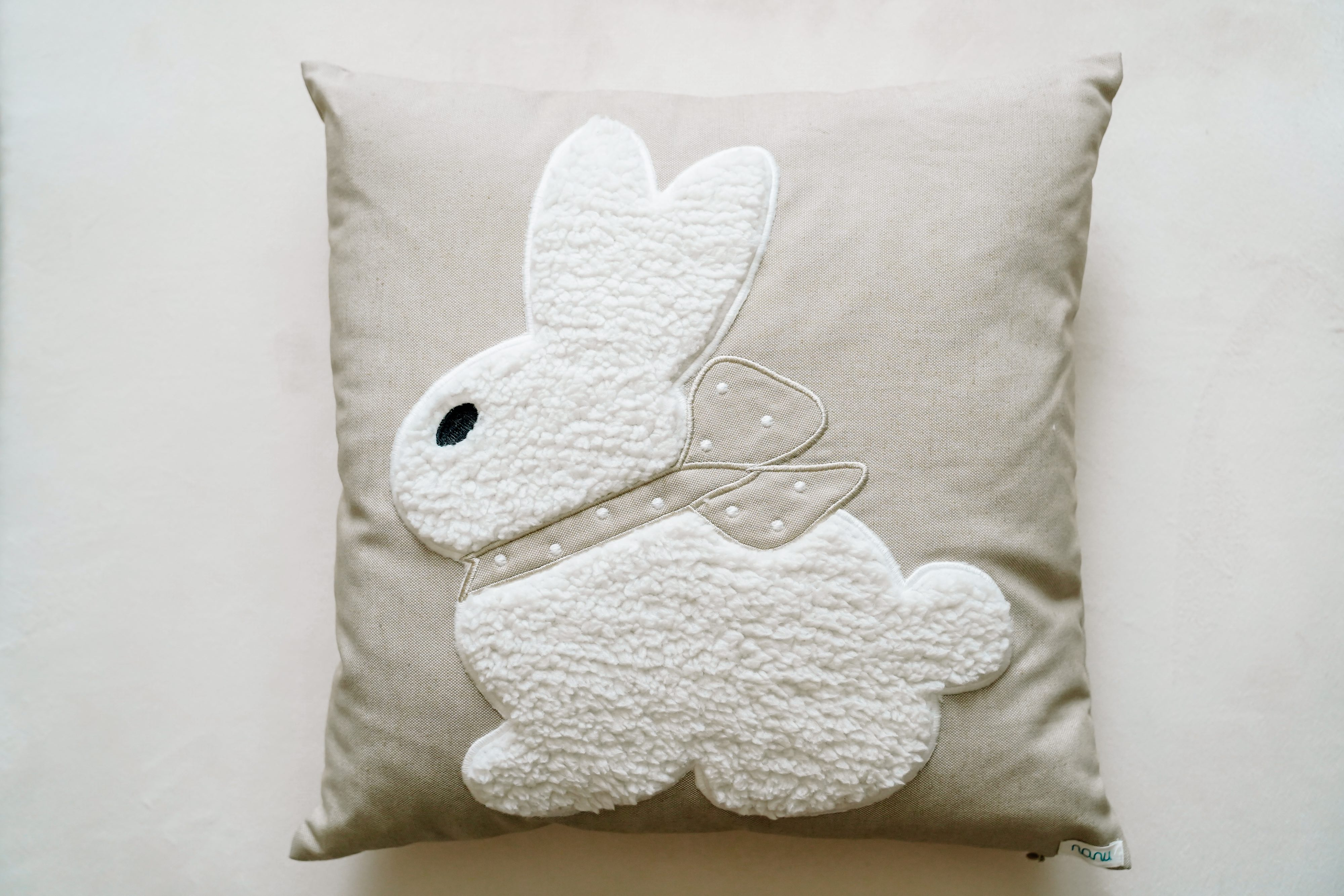 Tavşan Nakışlı Kırlent, çocuk odaları için özel olarak tasarlanmış, yüksek kalite standartlarında üretilmiş dekoratif bir üründür. Yumuşak dokulu kumaşı ve özenli nakış işçiliği sayesinde hem konfor hem de estetik görünüm sunar. Ürün ölçüleri 40x40cm'dir.
