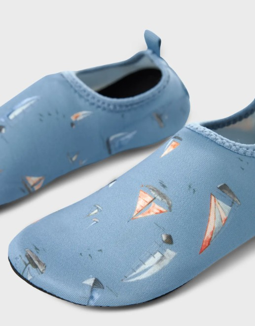 Bu sevimli mavi yüzme ayakkabısı, üzerindeki yelkenli desenleriyle çocuklara yaz enerjisini yansıtıyor. Esnek, hafif ve hızlı kuruyan kumaşı sayesinde hem deniz hem havuz kenarında maksimum konfor sağlar. Kaymaz tabanı sayesinde ıslak zeminlerde güvenli kullanım sunar. Kolayca giyilip çıkarılabilen yapısıyla ebeveynlerin de favorisi olacak.