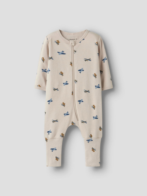 Uzun kollu tasarımı, ayakları kapatan paçaları ve fermuar koruyucusu ile hem sıcaklık hem de güvenlik sunar. Tüm vücuda yayılmış desenleriyle eğlenceli bir görünüm kazandıran bu tulum, gece boyunca miniklerin rahat etmesini sağlar.