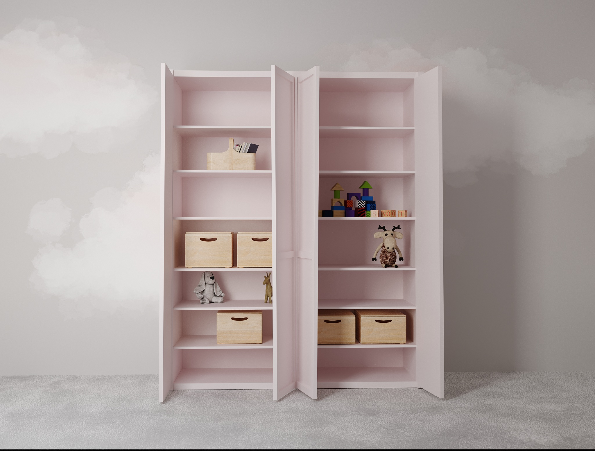Natus 4 kapılı çocuk gardırop, isteğinize göre 6 farklı renkte ve toplamda 32 farklı tonda, tercih edilen ölçüye göre üretilebilmektedir. Bu esnek tasarım, çocuğunuzun odasına mükemmel şekilde uyum sağlayacak bir gardırop seçmenize olanak tanır. Standart ölçüde dolabın içinde yer alan 12 raf ve 4 çekmece, çocuğunuzun her türlü giysi ve aksesuarını rahatlıkla düzenleyebilmeniz için tasarlanmıştır.