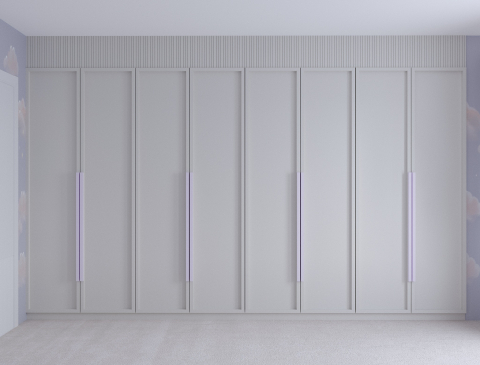 Natus 8 kapılı gömme çocuk gardırop, isteğinize göre 6 farklı renkte ve toplamda 32 farklı tonda, tercih edilen ölçüye göre üretilebilmektedir. Bu esnek tasarım, çocuğunuzun odasına mükemmel şekilde uyum sağlayacak bir gardırop seçmenize olanak tanır. Standart ölçüde dolabın içinde yer alan 18 raf ve 8 çekmece, çocuğunuzun her türlü giysi ve aksesuarını rahatlıkla düzenleyebilmeniz için tasarlanmıştır.