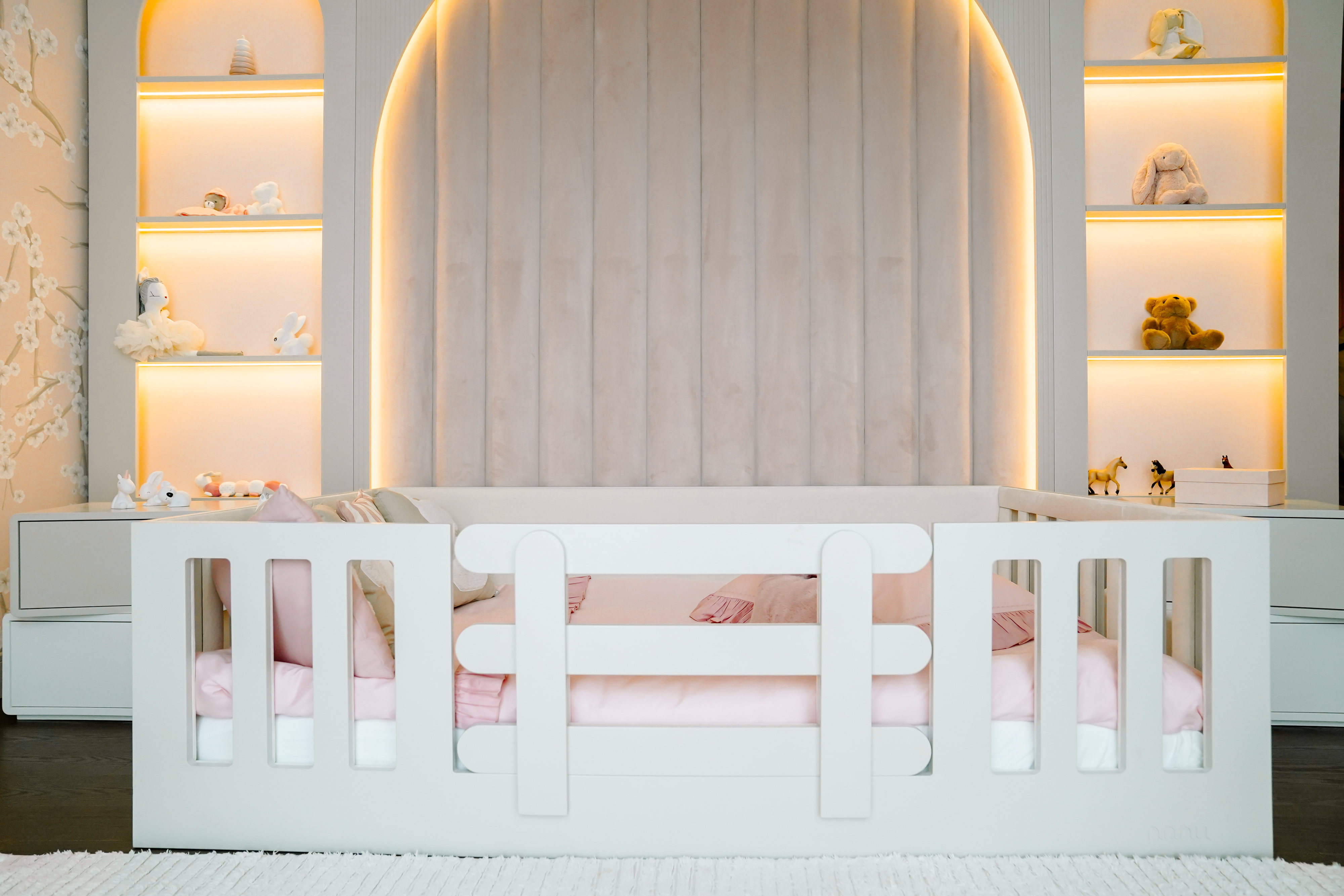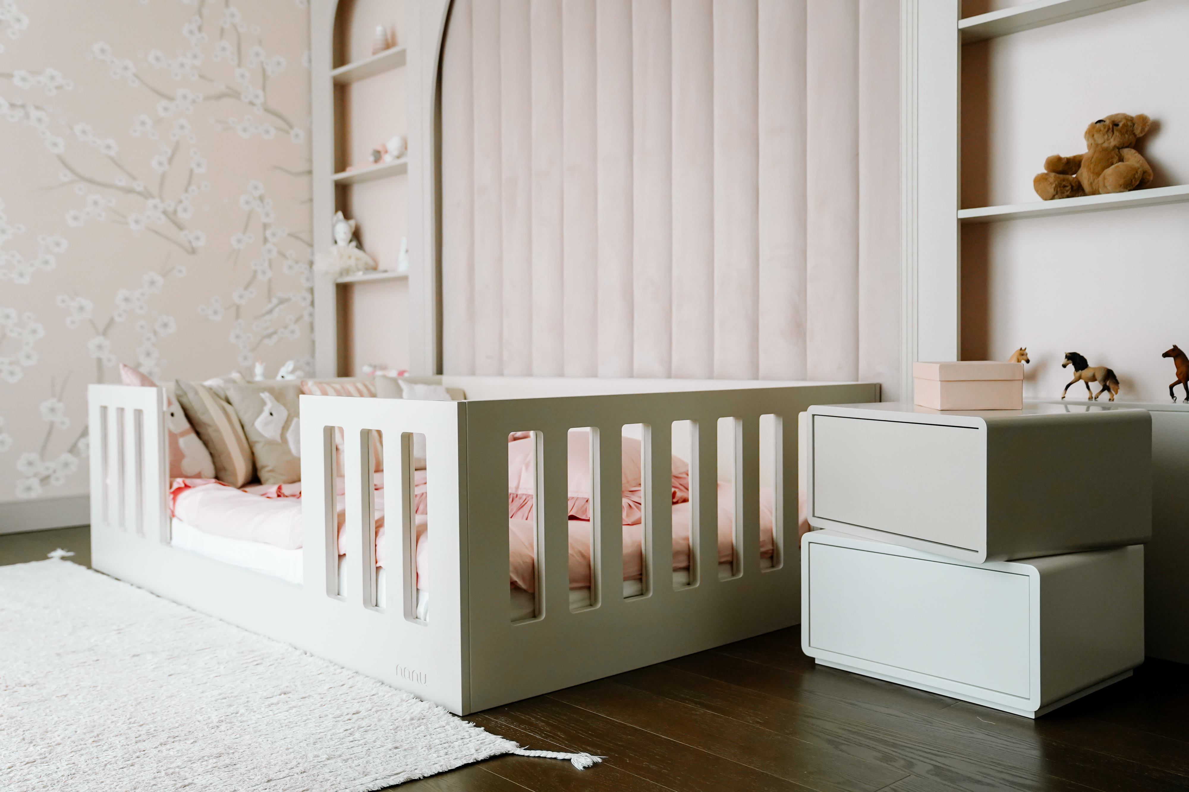 3. Estetik olarak sarkan, büzüşen kenarlık görüntülerine son veriyor ve mobilyaya ve çocuğun odasına ekstra şıklık katıyor.