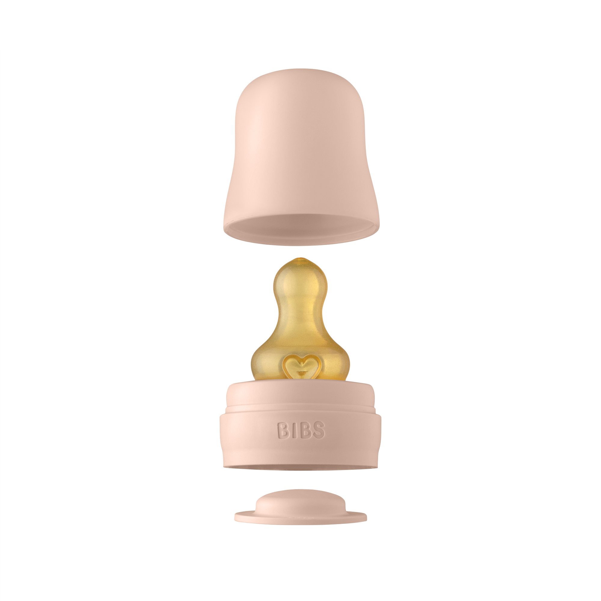 BIBS Baby Bottle Kit İçeriği: Yavaş akış biberon ucu, süt kilidi, vidalı kapak, huni ve üst kapak içerir.