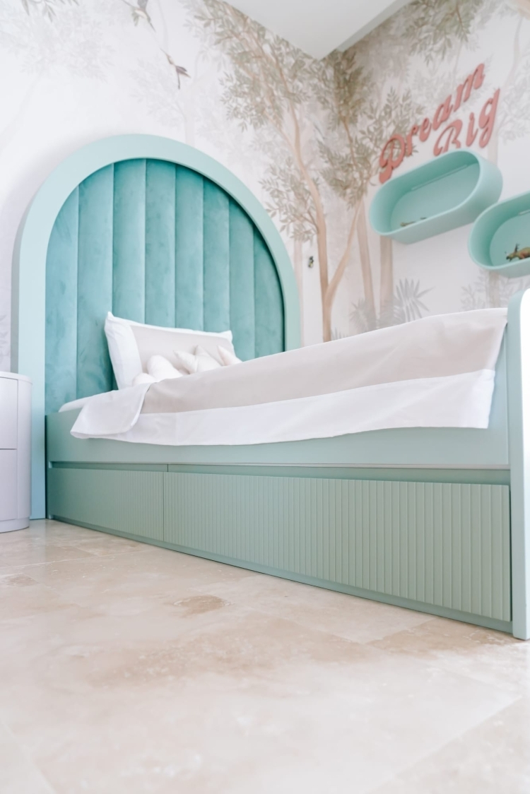 Daha fazla depolama alanına ihtiyaç duyarsanız, arkadaş yatağı yerine 2 adet çekmece sipariş edebilirsiniz. Bu, odanın daha düzenli tutulmasını sağlar ve çocuğunuzun eşyalarını saklaması için pratik bir çözüm sunar. Lake oval başlığın iç kısmındaki LED aydınlatma, karyolaya hem estetik bir dokunuş hem de işlevsellik katar.
