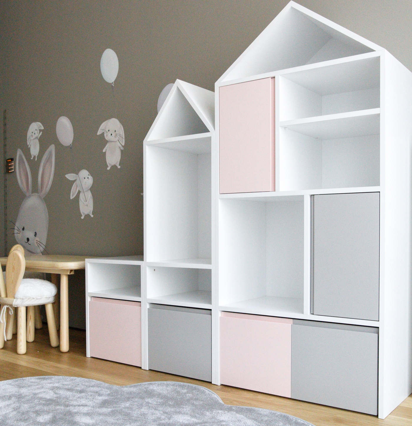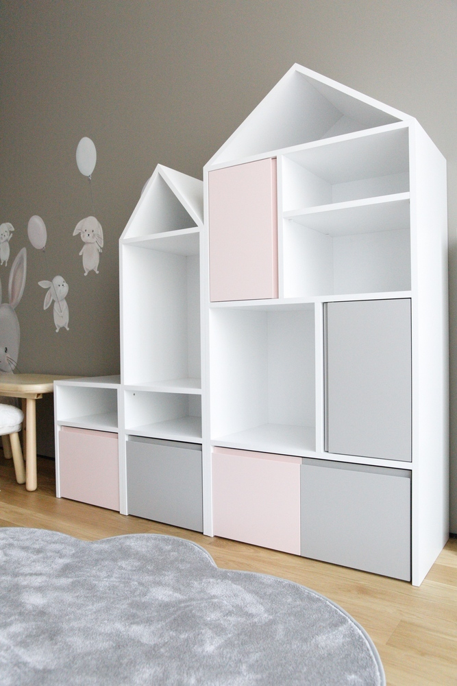 Roofy Kitaplık ve Oyuncak Ünitesi çocuk odaları için özel olarak tasarlanmış, işlevselliği ve şıklığı bir arada sunan mükemmel bir mobilyadır. Açık rafları ve kapaklı bölmeleri sayesinde kitaplar, oyuncaklar ve diğer eşyalar kolayca düzenlenebilir. Bu çocuk kitaplığı, hem düzenli bir görünüm sağlar hem de çocuğunuzun eşyalarına ulaşmasını kolaylaştırır.