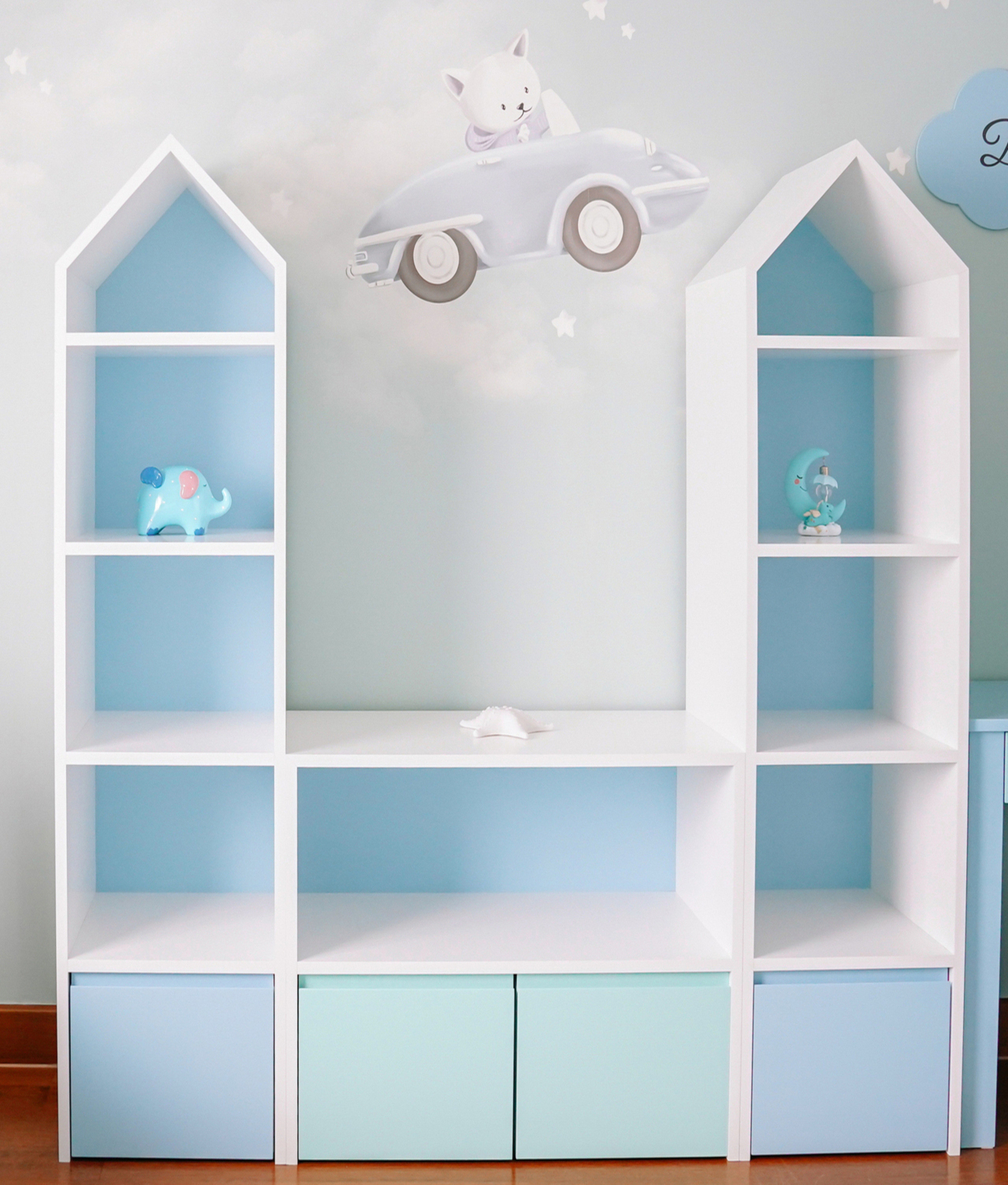 Roofy Kitaplık ve Oyuncak Ünitesi, çocuklar için özel olarak tasarlanmış modern ve çok işlevsel bir üründür. Açık rafları ve kapaklı bölmeleri sayesinde çocuk kitaplığı olarak kullanılabilirken, oyuncaklar için de ideal bir depolama alanı sunar. Roofy kitaplık, çocukların kitaplarına ve oyuncaklarına kolay erişim sağlamasını hedeflerken, çocuk odası kitaplık ihtiyacını şık bir şekilde karşılar.