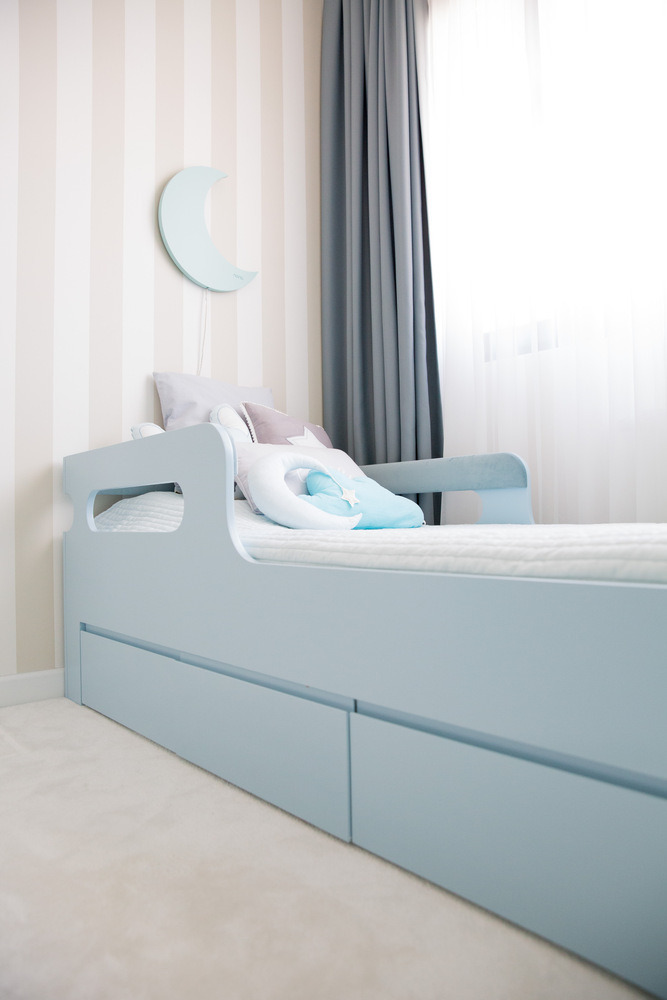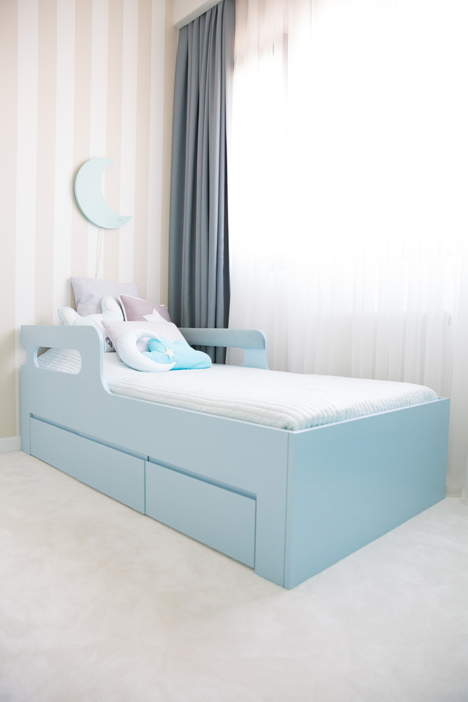 Sakura geçiş çocuk karyolası, tek kişilik yataklarda uyumaya yeni başlayacak çocuklar için tasarlanmıştır. 3 yaşından itibaren kullanılabilir ve 8-10 yaşına kadar çocuğunuzun güvenle uyuyabileceği bir alan sunar. Yumuşak ve hava alan sabit yan korumalıkları, çocuğunuzun uyku sırasında rahat ve güvende olmasını sağlar. Modern tasarımı, hem çocukların konforunu hem de ebeveynlerin ihtiyaçlarını karşılar.