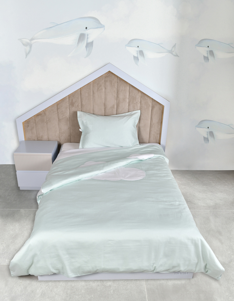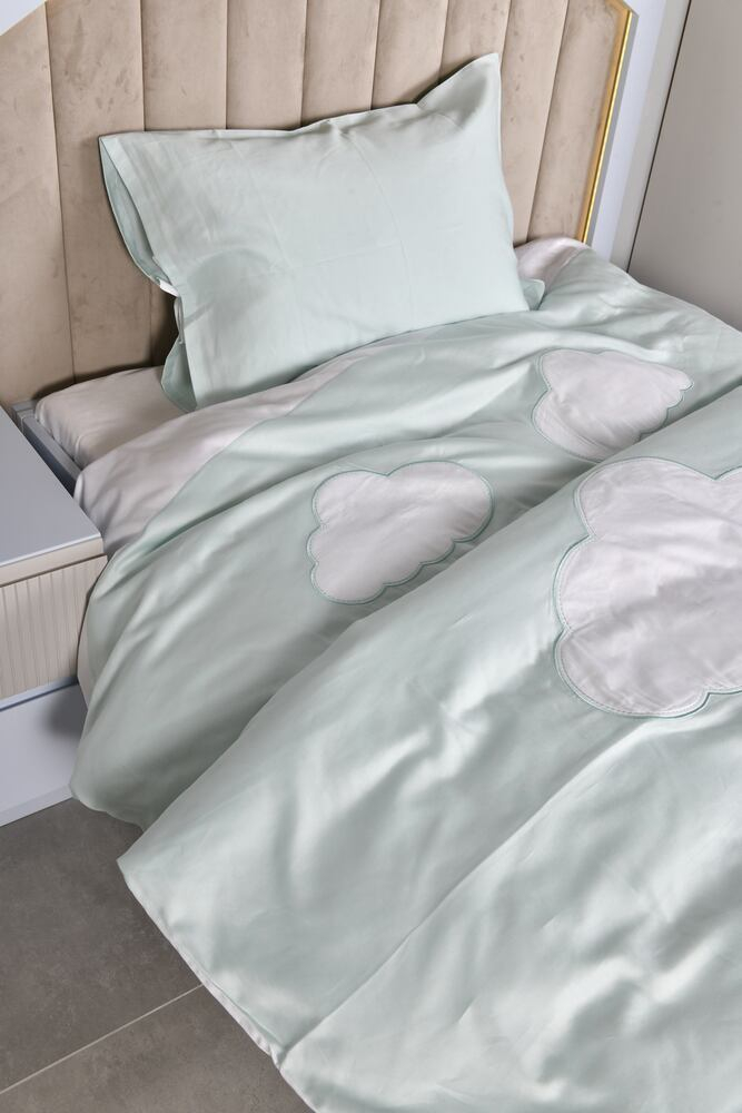 Tek kişilik yatağa geçmiş tüm çocuklar için uygun olan, yumuşacık pamuk satenden üretilmiş %100 koton nevresim takımı, çocuklarınızın konforu düşünülerek tasarlanmıştır. Nanu'ya özel bulut nakışı ile çok sevimli ve şık olan bu çocuk nevresim takımı, pastel tonları ile odanıza dingin bir ruh katacak.